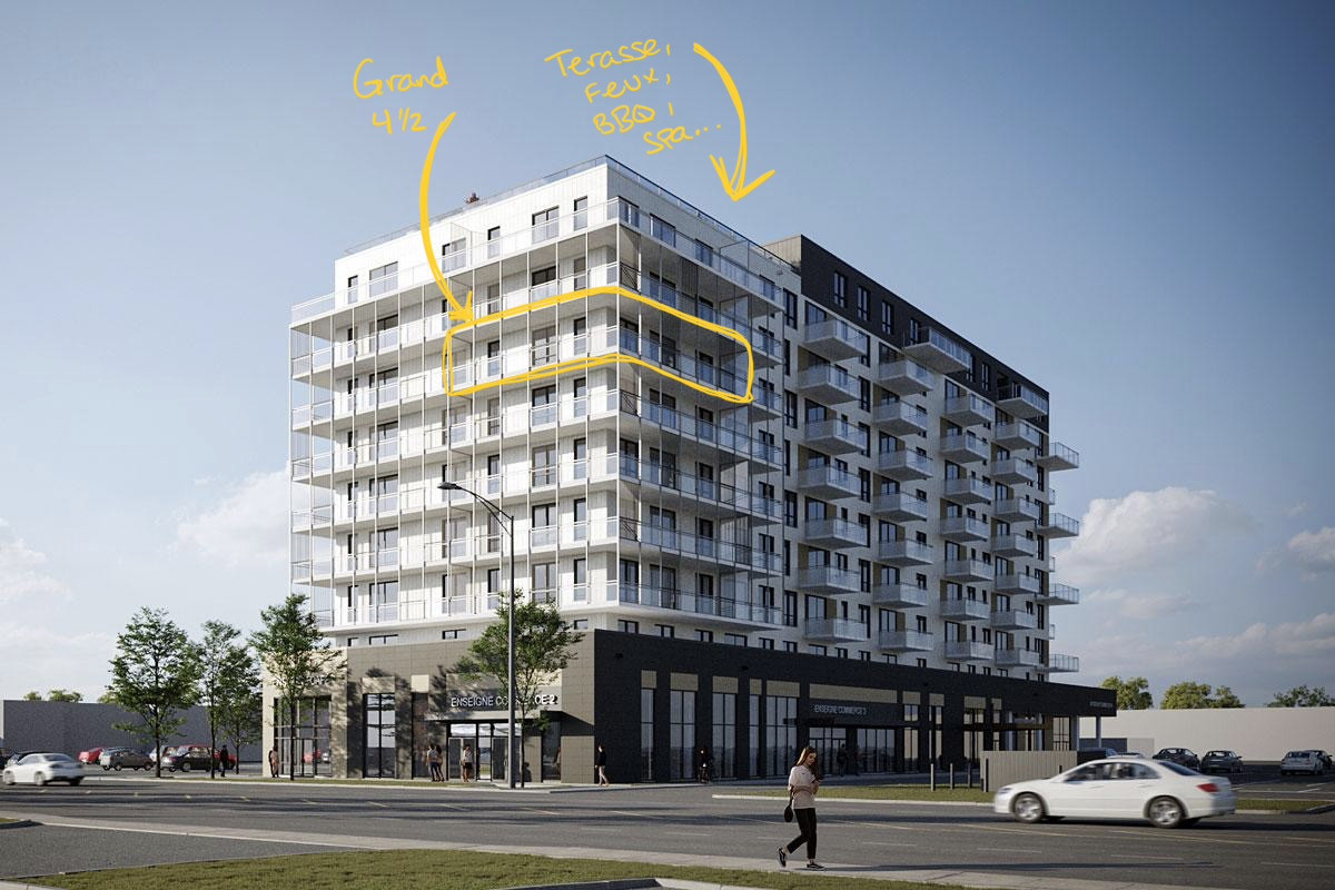 ???? IMMENSE balcon en coin (6 pieds de profond par 80 pieds de long)