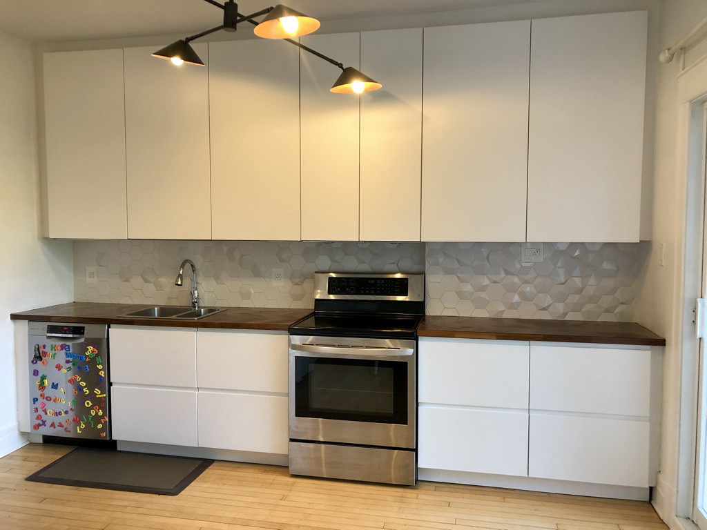 Cuisine rénovée avec beaucoup de rangement
