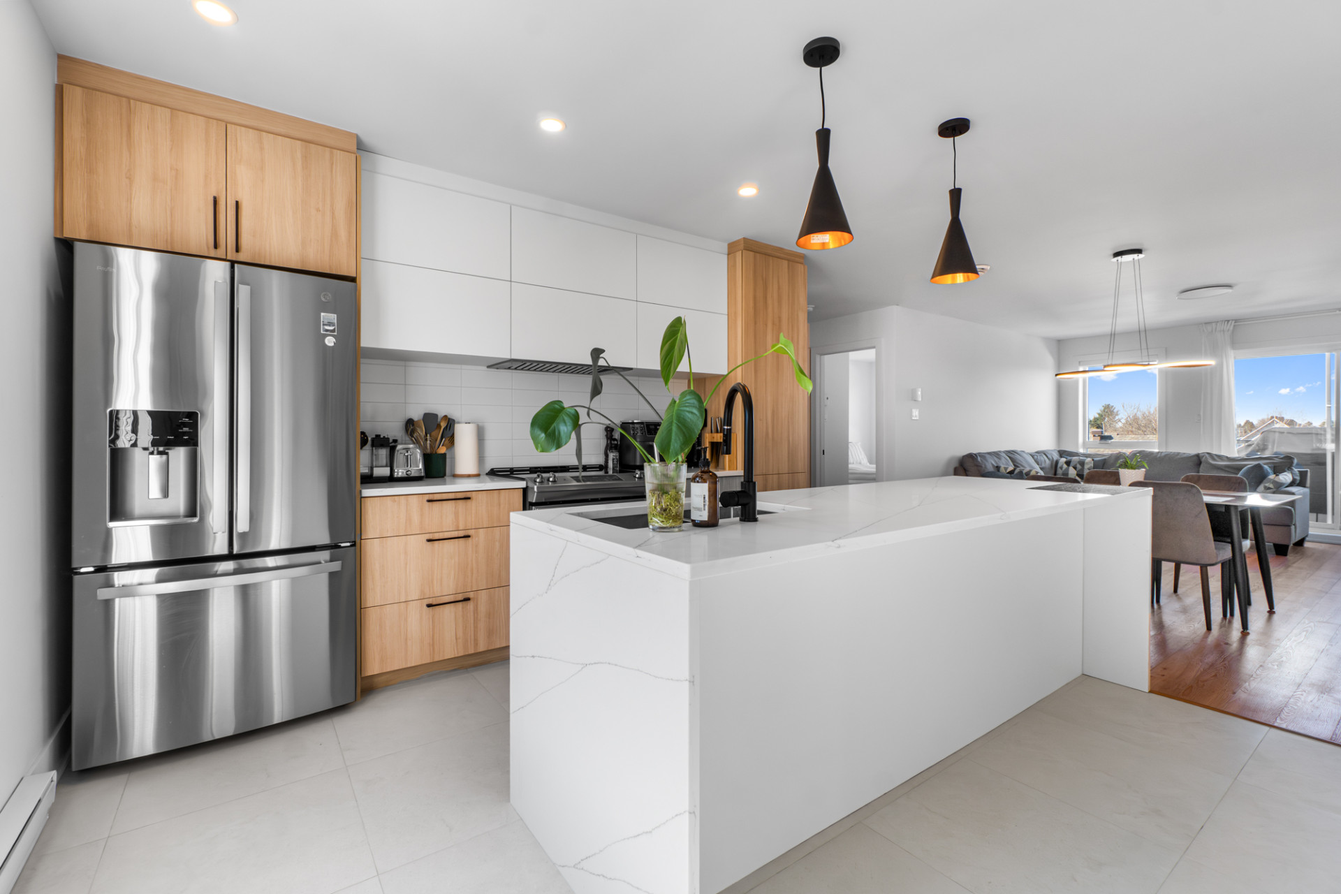 - Cuisine avec beaucoup de rangement et îlot central de QUARTZ