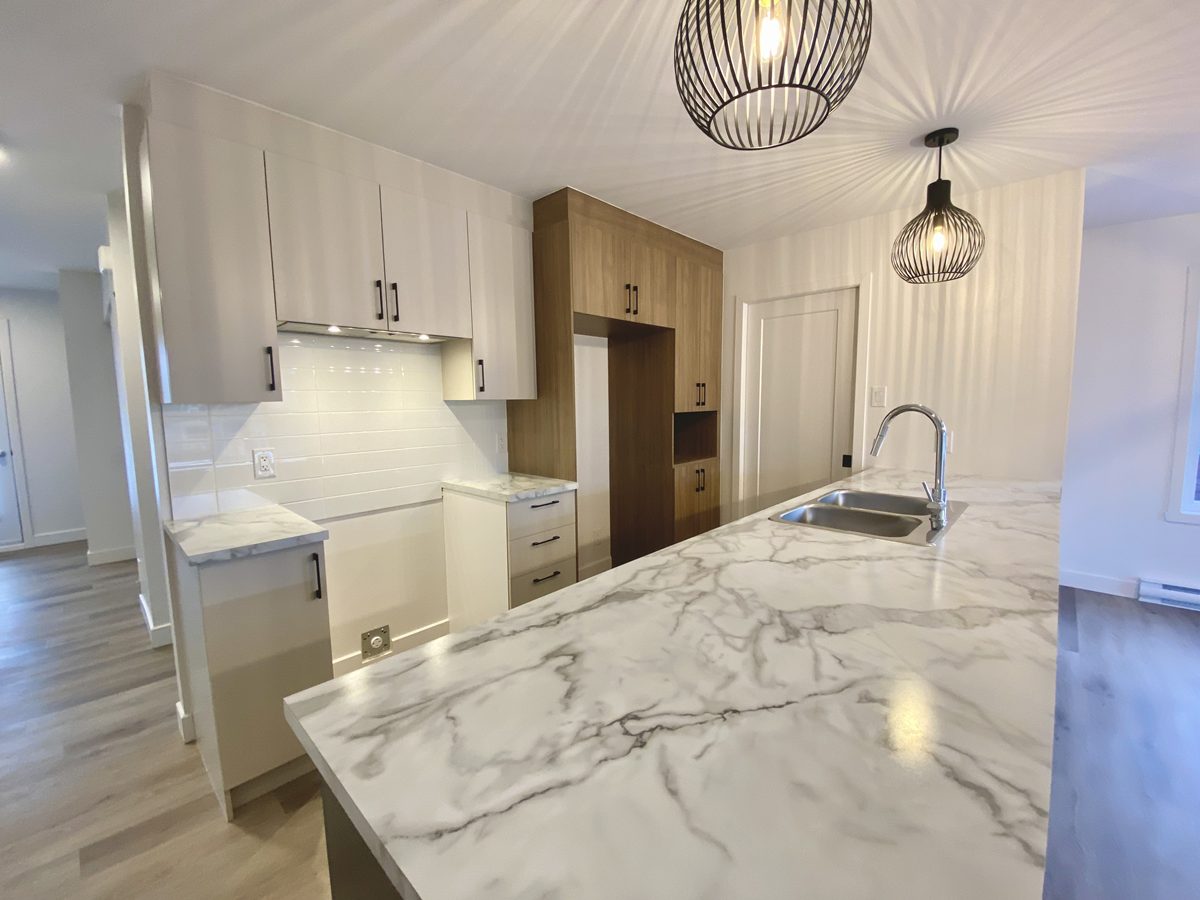 Un style unique et des espaces qui répondront à vos attentes en matière de confort et de qualité. Que ce soit pour la porte-patio de 8 pieds, les comptoirs de cuisine en quartz ou la salle de lavage indépendante, vous serez conquis.