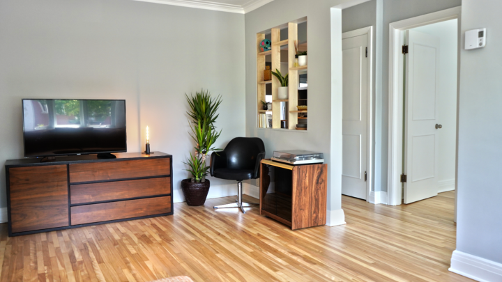 Ce logement spacieux offre plusieurs possibilités d’aménagement afin de s’adapter facilement à différents besoins. Situé au 2e étage d’un duplex, il bénéficie d’une belle luminosité et d’un cachet classique avec boiseries, portes vitrées décoratives et planchers de bois franc. Sa configuration polyvalente permet d’aménager un salon double, un espace bureau ou un coin télétravail confortable.