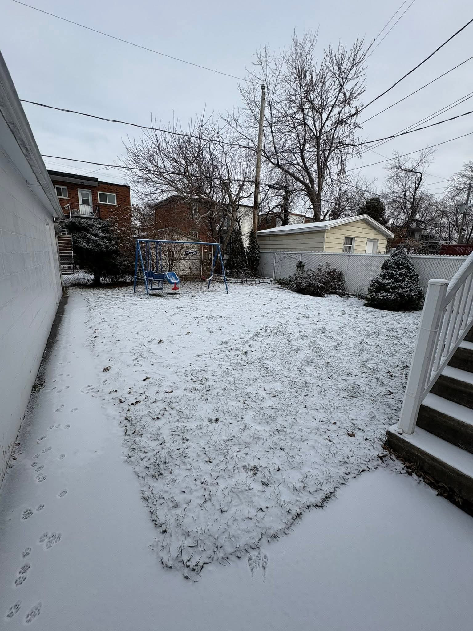 Grand 5½ lumineux avec deux garages et 4places de stationnement, bénéficiant d'une cours clôturée privative et d'une terrasse arrière de bonne superficie.