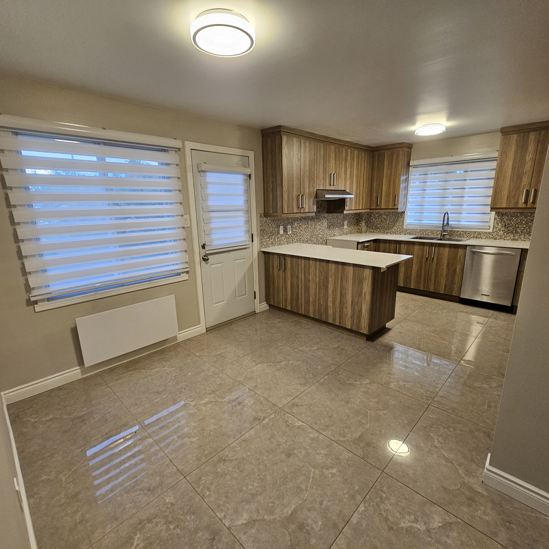 Montréal-Nord – Logement 5 1/2, haut d'un duplex sur blvd Maurice Duplessis. Complètement rénové. 3 chambres à coucher fermé avec garde-robes et planchers à lattes de vinyle. Chauffage avec plinthes électrique avec thermostat digitales - par locataire. Thermopompe/climatiseur murale inclus. Eau chaude et électricité par locataire. Fenêtres récentes. Vitres énergétiques remplacés à l’avant salon et chambre maitre. Stores moderne blanches style Zebra inclus. Entrée laveuse/sécheuse dans salle de bain. Cuisine moderne avec lave-vaisselle inox et hotte inox inclus. Cabine pour frigo 36po avec branchement eau/glace. Bien éclairé avec DEL partout le logement. Balcons avant et arrière. 2 cordes à linge 40 pieds. En face de l’arrêt d’autobus (69) et 4 écoles primaires et secondaires incluant Ecole Henri Bourassa, Gerald McShane, Lester B Pearson et Jules Vernes. Près de tous les services incluant centre d’achat Henri Bourassa a 5 min avec Walmart, Canadian Tire et plusieurs magasins. Parc Henri Bourassa à 5 min marche avec beau terrain soccer synthétique et aréna. Disponible présentement. Références et enquête crédit. Non-Fumeurs. Pas d'animaux.