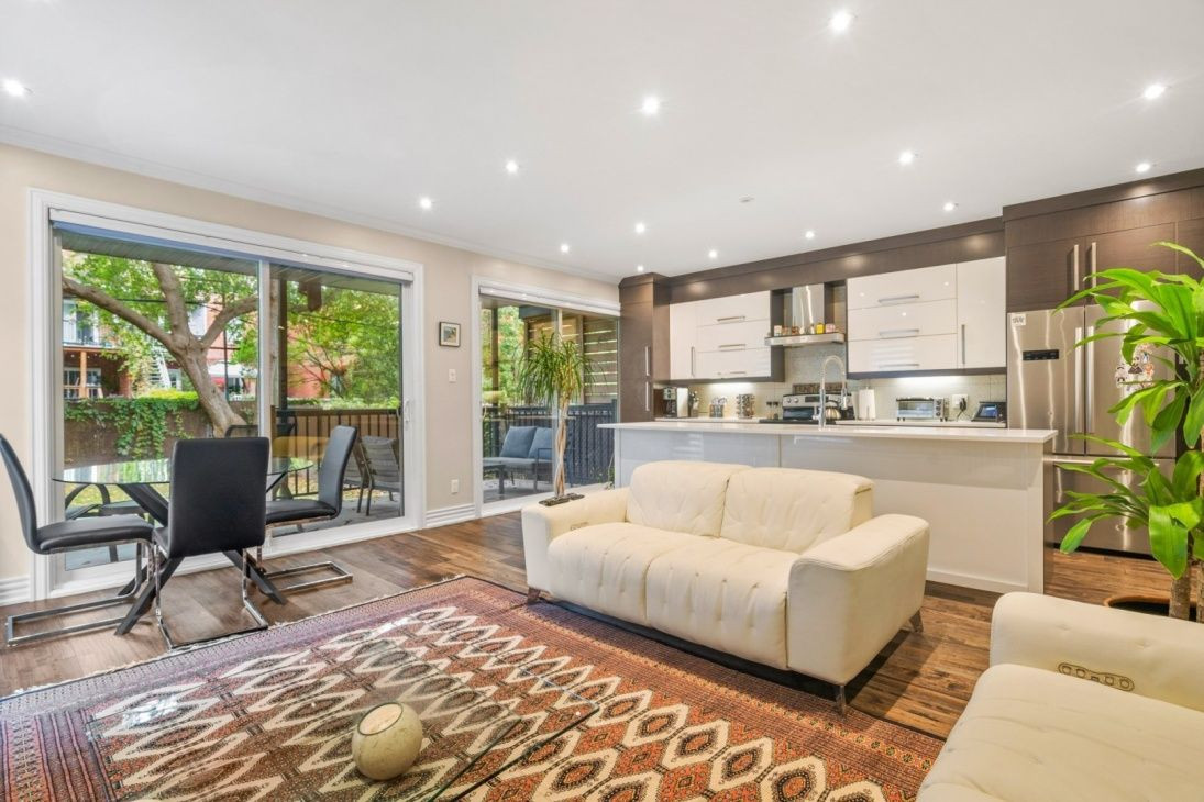 Cession de bail d'un condo de 1 800 pi2 entièrement rénové avec garage intérieur et un stationnement extérieur, grande cour privée, balcon, 2 chambres, 2 salles de bain complètes et beaucoup de rangement.
