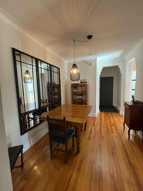 Planchers en bois franc, plafonds hauts, balcon donnant sur la chambre, foyer décoratif, moulures au plafond. Style art déco