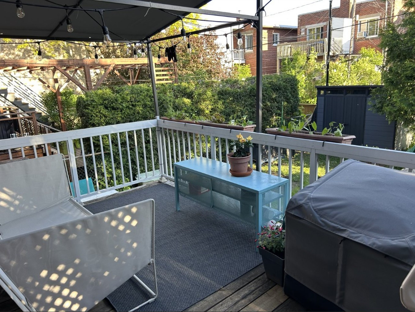 RDC d'un triplex sur la 14e avenue, quartier familial, près des services, écoles et bus. Grande terrasse et accès à la cour.