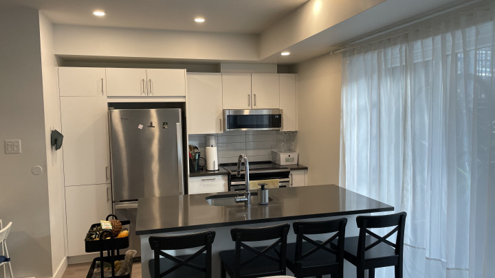 - Cuisine équipée de 201 pi2, frigo, cuisinière et grande table.