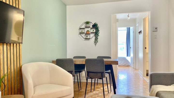 L'appartement est meublé, il est situé en plein centre ville de Montréal, il est calme et est situé à côté des stations Georges Vanier (ligne orange) et Guy Concordia (ligne verte).