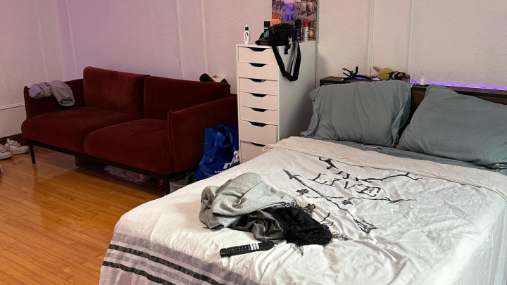 • Entièrement meublé : lit, bureau, lampes, linge de lit, laveuse, sécheuse, micro-ondes, four, etc.