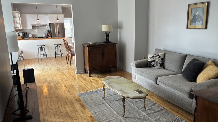 Situé au coeur du quartier Mile End dans une rue tranquille ce très grand 7 ½ est éblouissant de lumière, haut de plafond, les moulures sont d’époque. L’appartement est au 3éme étage d’un charmant triplex et est entièrement remis à neuf. Deux balcons avec une belle vue du quartier.