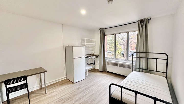 Chambre fraîchement rénovée, à louer en plein cœur de Rosemont au croisement de la rue Holt et 9e avenue. Idéal pour étudiants et travailleurs, l’immeuble est à 100m du boulevard St-Michel et du transport en commun. Accès à la station de métro St-Michel en moins de 15 minutes en autobus. La promenade Masson est à 500m (2 blocs) et vous offre toutes les commodités (épicerie, pharmacie, cafés, fruiteries, restaurants, dépanneur).