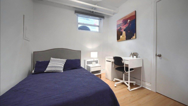 Chambre meublée à louer dans un grand appartement de 3 chambres en demi sous-sol, situé dans le secteur Ville-Marie, au cœur de Montréal.