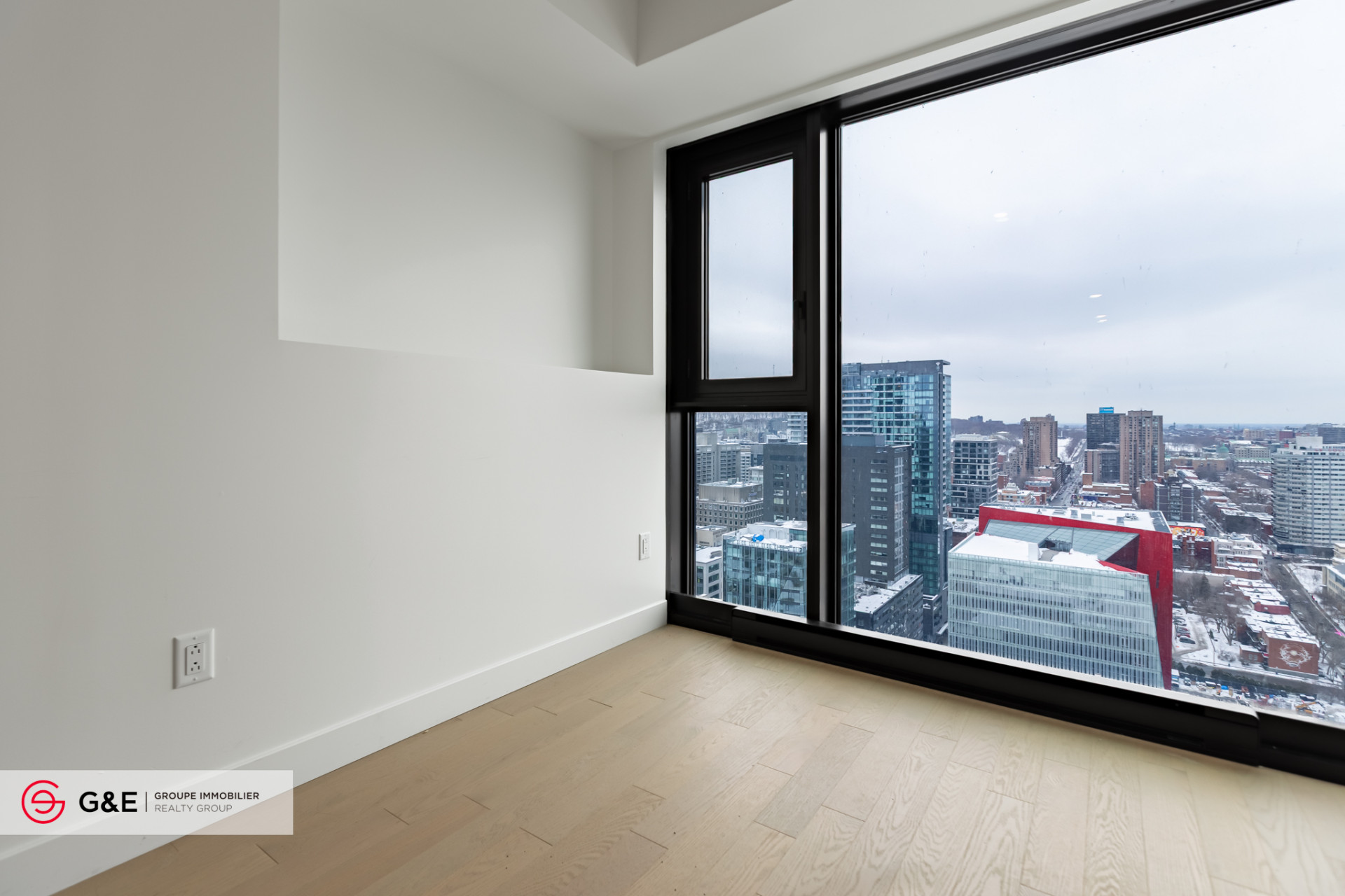 Vivez au coeur du centre-ville de Montréal au Maestria Condominiums, dans le Quartier des Spectacles. Ce studio situé au 32e étage au 1245 rue De Bleury offre une vue panoramique sur la ville et des finitions modernes. À quelques pas de la Place des Arts, McGill, UQAM, Concordia et du métro. Profitez d'installations haut de gamme : piscines intérieure et extérieure, gym, simulateur de golf, cinéma privé et passerelle panoramique. Idéal pour étudiants et jeunes professionnels recherchant un style de vie urbain et dynamique.