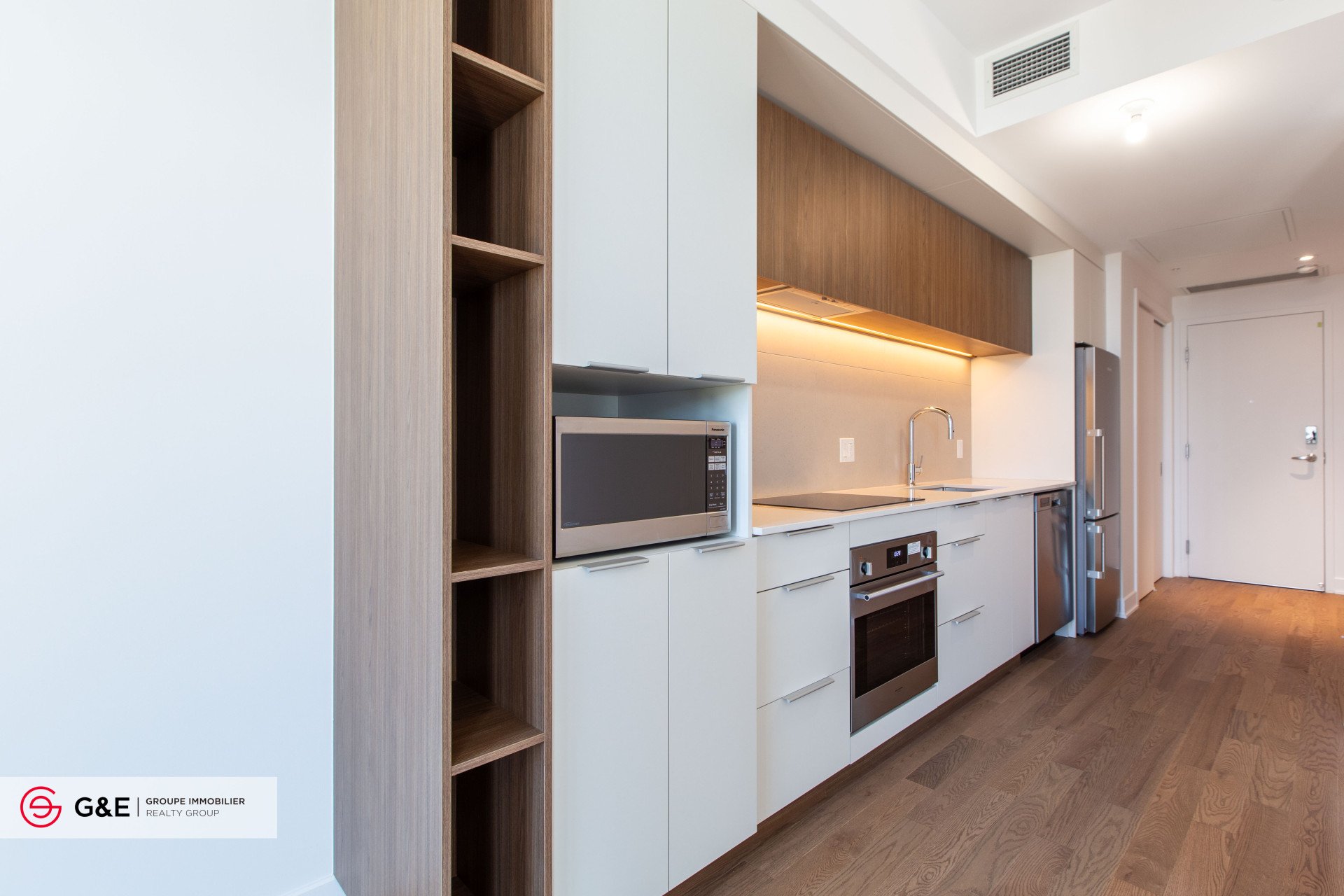 Réfrigérateur, cuisinière, lave-vaisselle, laveuse, sécheuse, micro-ondes, couvre-fenêtres, stationnement intérieur, casier, 1 jeu de clés, 1 laissez-passer de stationnement