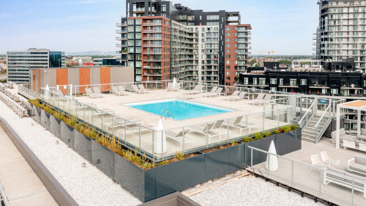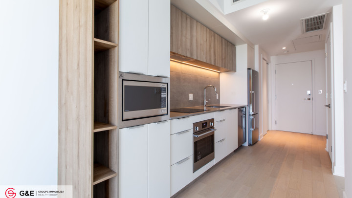 Luxueux immeuble Magellan Phase 2 qui offre des vues spectaculaires et des couchers de soleil sur le parc, ainsi que de magnifiques espaces communs, y compris piscine intérieure et sur le toit, gymnases, salon Sky, terrasse sur le toit et salle pour enfants et familiale! premier développement résidentiel relié au REM (la station Du Quartier) par un tunnel intérieur. Vue du jardin! À distance de marche des magasins Dix30. Petit immeuble. Incroyable spacieux 1 chambre + 1 salle de bain seulement 1 voisin Copropriété. À VOIR