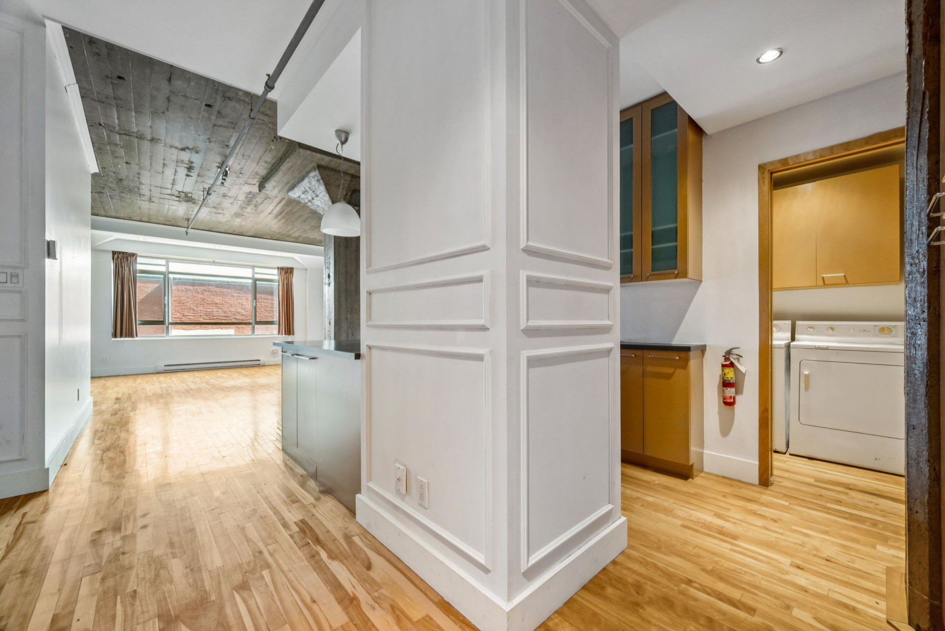 Espace de 907 pi², plafonds de 10 pi, plan à aire ouverte favorisant la lumière naturelle. Cuisine conviviale organisée autour d'un grand comptoir -- idéale pour cuisiner et recevoir. Chambre fermée avec vaste walk-in et salle de bain attenante dotée d'une grande douche en verre. Fenestration généreuse, charme et fonctionnalité réunis.