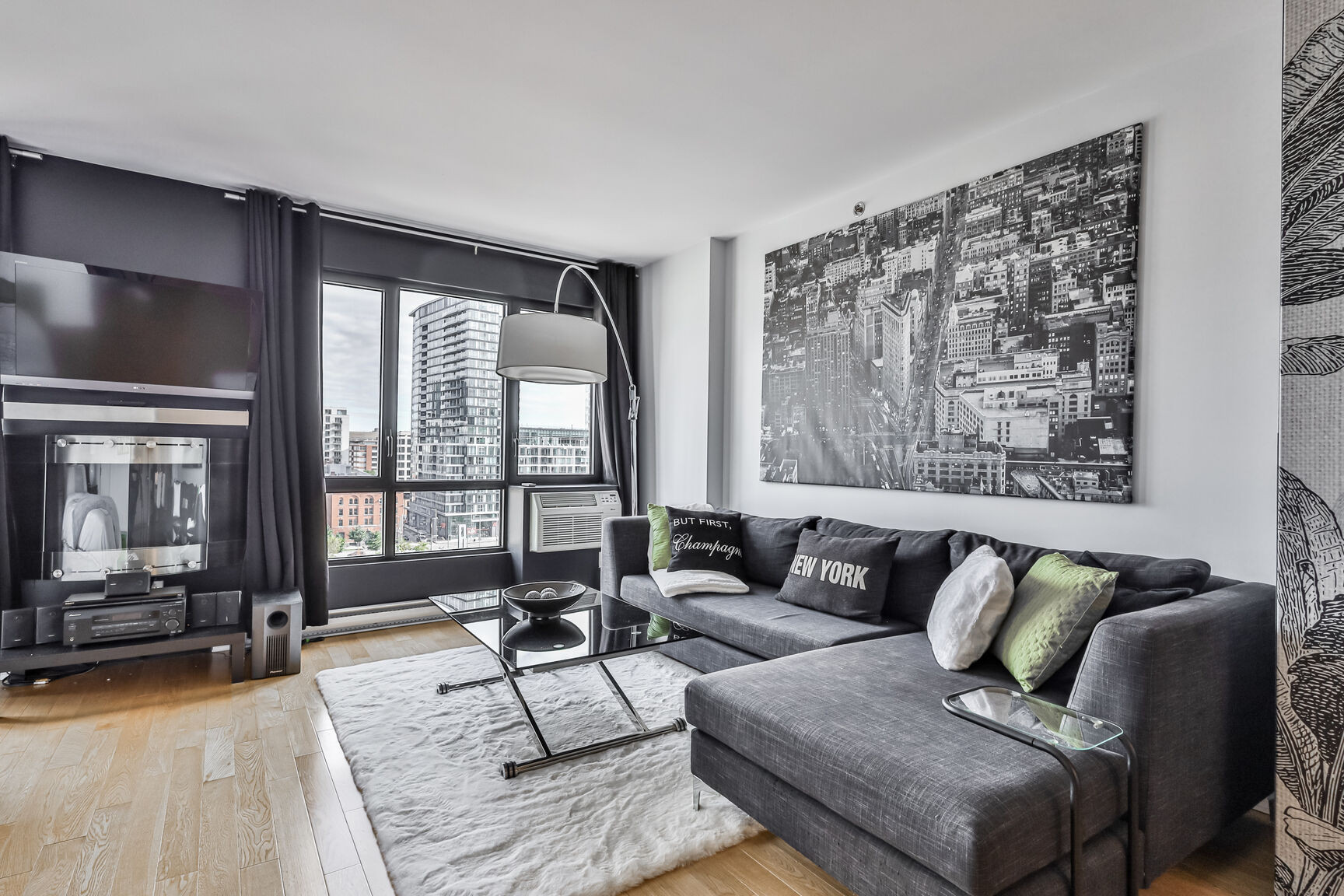 PRIME LOCATION, with indoor parking, large 3 1/2 condo with open bedroom, 100% equipped, warm and modern character, 650 meters from Bonaventure metro station. Located in the coveted Griffintown district near the old Port and all services, grocery stores, SAQ, several cafes and restaurants.... This condo comes fully furnished with 5 appliances, with a double bed, sofa, kitchen table. Workspace, office. The kitchen comes fully equipped with the essentials for cooking, such as cookware, dishes, cutlery, etc. You have access to indoor parking. Also, GYM, swimming pool, terrace, spa, BBQ, fireplace. Near the city center and all services, very bright and sunny