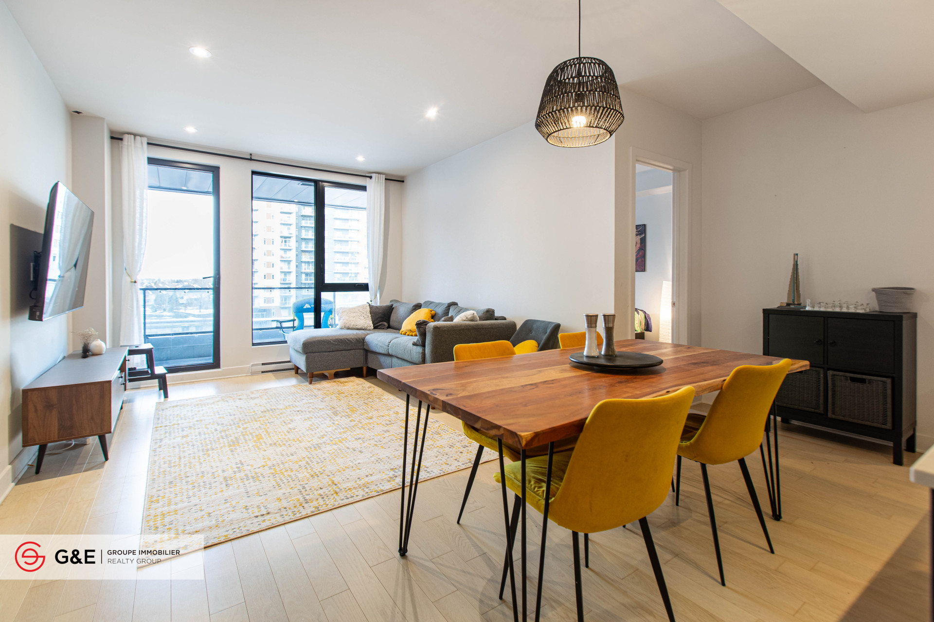 Condo moderne de 2 chambres et 2 salles de bain (environ 91 m²) dans l'immeuble Oria Phase 1, au 605, rue de l'Escale, à Brossard. Situé au 5e étage, ce condo offre un espace de vie lumineux à aire ouverte, une cuisine élégante avec comptoir-lunch et un balcon privé. Il comprend une place de stationnement intérieure et un casier. Profitez d'aménagements haut de gamme tels qu'une piscine, un centre de conditionnement physique, un spa, un sauna et un salon pour résidents. Idéalement situé près du Quartier DIX30 et à quelques pas de la station REM, il permet un accès rapide au centre-ville.