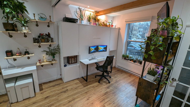 Superbe 2 chambres sur deux niveaux dans un immeuble récent, spacieux, lumineux et insonorisé. Entièrement meublé avec mobilier neuf, internet haute vitesse inclus, climatisation, télé intelligente, locker privé et tous les électroménagers/accessoires (vaisselle, draps, serviettes). Une chambre avec lit queen + une chambre/bureau avec divan-lit. Idéalement situé près des commerces, cafés, parcs et à 5 min du métro Frontenac.