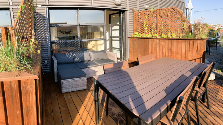 CONDO MEUBLÉ SUR 2 ÉTAGES AVEC BELLE GRANDE TERRASSE PRIVÉE DANS LE MILE-EX/MARCHÉ JEAN-TALON (LIGNE BLEUE ET ORANGE)