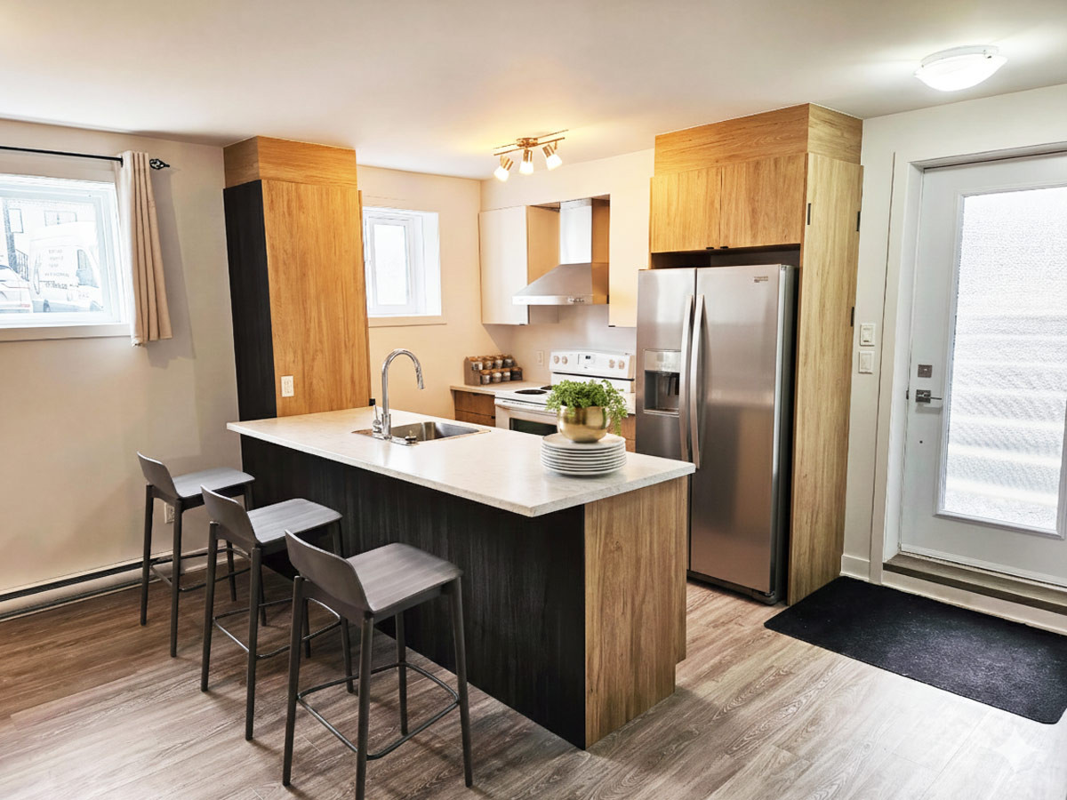 Disponible le 1 mars 2026. Grand et spacieux 4 1/2 neuf avec 2 chambres à coucher et une salle de bain. Grand îlot de cuisine de 72 pouces pour 3 tabourets. Accès à la grande cour arrière, parfait pour une famille ou pour un couple. Ce condo est à proximité de tous les services, des commerces, des autoroutes (640, 13 et 15) et du nouveau train électrique REM avec un accès à la Gare Centrale de Montréal en 34 minutes, sans trafic. Les chats et les petits chiens (20 lbs max) sont acceptés. Propriétaire occupant qui entretient très bien le bâtiment et qui garantit la qualité de vie et la sécurité des occupants, disponible en tout temps.