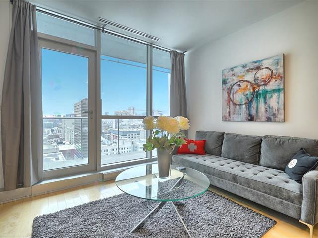 Situé au 19e étage, ce superbe condo offre une vue imprenable sur le centre-ville et le Mont-Royal.