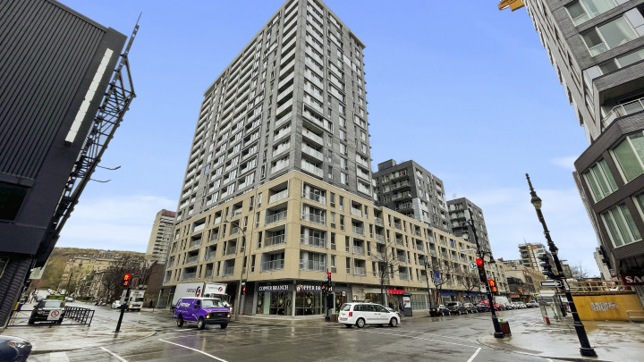Immeuble de construction récente situé entre le Centre-ville et le Vieux-Montréal. Surveillance électronique, Intercom, terrasse commune sur le toit, salle communautaire, chalet urbain et gym dans l’immeuble.