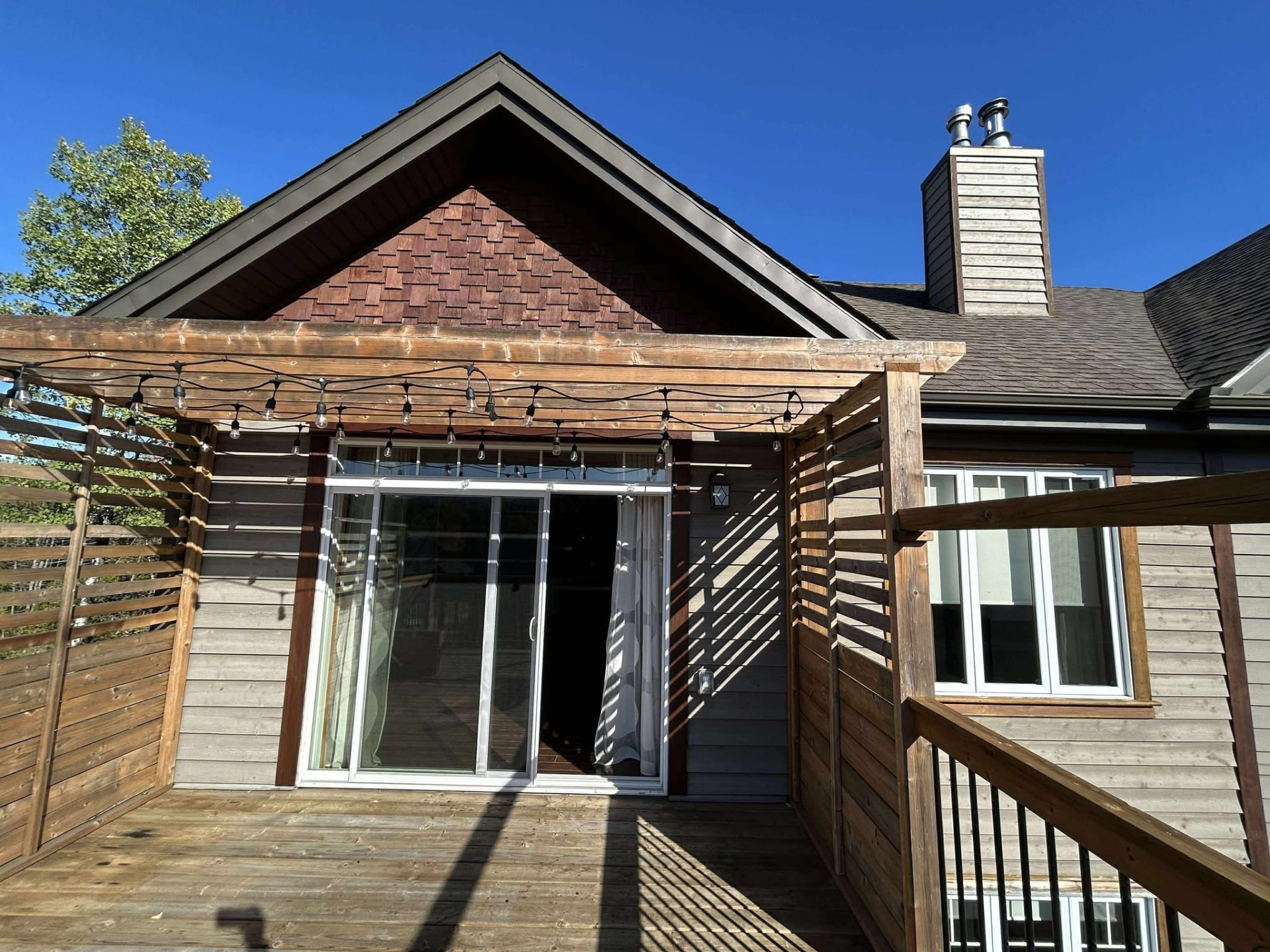- Aire de vie ouverte avec salon, salle à manger et cuisine donnant sur une terrasse offrant une magnifique vue sur le mont Orford