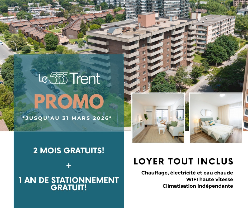 OFFRE LIMITÉE : 2 MOIS DE LOYER GRATUIT + 1 AN DE STATIONNEMENT GRATUIT*